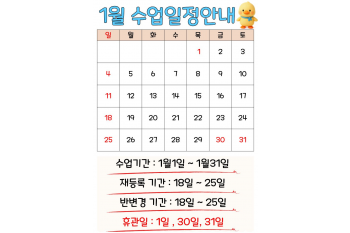 1월 수업 일정 안내안녕하세요. 엔젤크루 수영장입니다.…